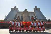 在长达一个半小时的徒步,大部队终于到达了目的地-铁人王进喜纪念馆,抬眼望去,沐浴在阳光下的纪念馆是那么庄严雄伟。在员工会干部的带领下,新生在铁人纪念碑合影留念,随后井然有序的进馆参观。