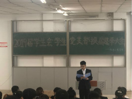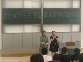 2019年7月3日中午11:40,在主楼1-3、1-4阶梯教室分别举行了2019届院级团学组织员工干部竞选大会。本次换届大会由员工支部书记赵亮老师、辅导员王传英老师、刘伟泽老师主持召开,2018届团学组织员工干部及员工代表参加大会。