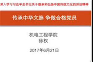为贯彻落实习近平总书记“两学一做”精神内容,继承和传承中华民族传统美德。beat365亚洲体育官方网站于2017年6月21日14:40综合楼306开展“传承中华文化,争做合格党员”党课教育活动。党课由徐权经理主讲,公司教工党员、员工党员参加。