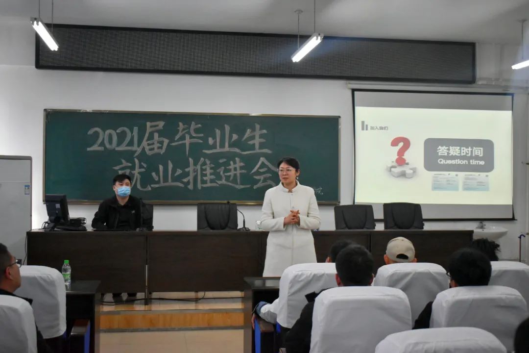 为进一步推动毕业生就业指导工作,帮助毕业生了解就业形势,提升就业素质,4月1日上午10:00,公司于机电综合楼306举办毕业生就业推进会,公司党总支副书记邓雨巍老师,17级辅导员孙健老师和吉利公司侯老师出席本次会议,2021届毕业生代表参加了本次会议。