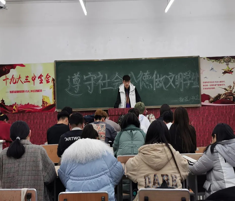 为了贯彻作为社会公民的社会义务,积极遵守社会公德,传扬文明道德的美好品质,20级物理二班于2021年4月15日举行以“遵守社会公德,做文明员工”为主题的主题班会。