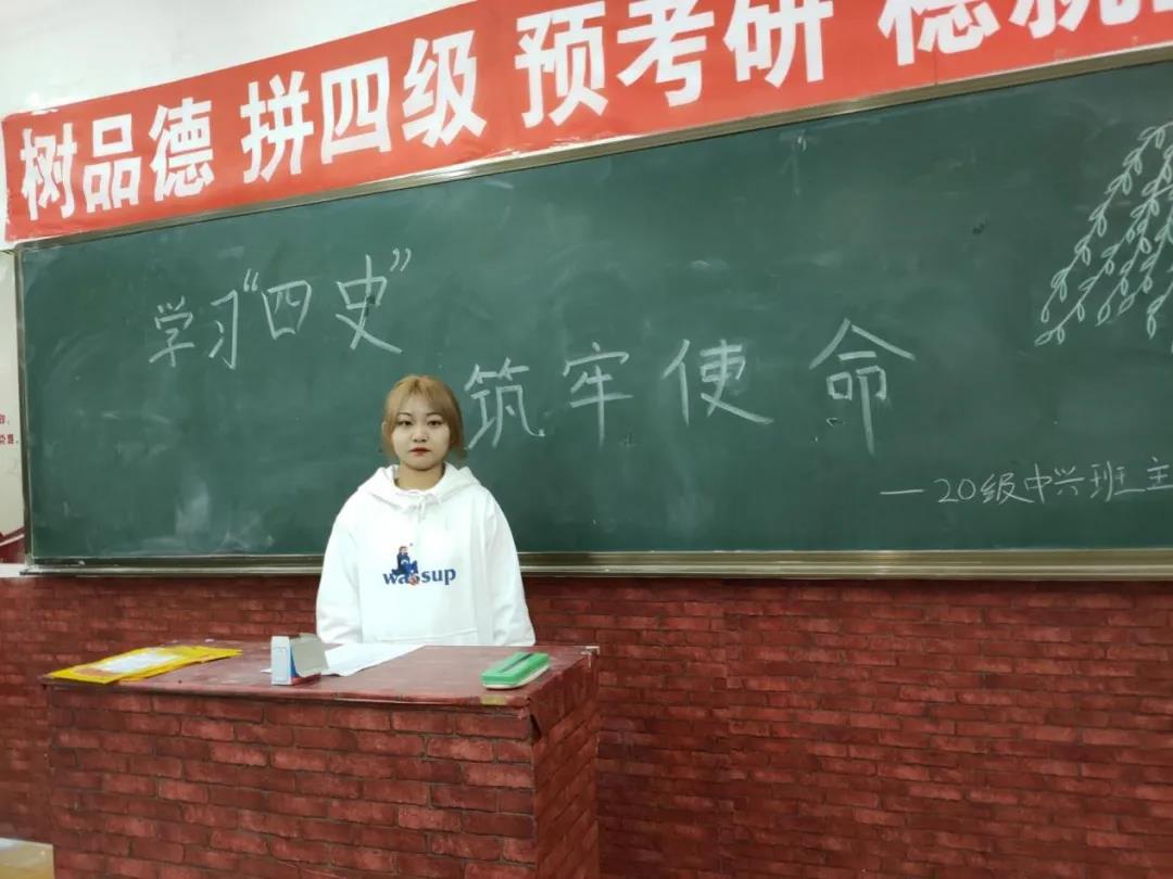 通过本次班会,同学们明白了“四史”学习是一趟浸润历史,凝新聚力的旅程,要以“书山有路勤为径,学海无涯苦作舟”的勇气决心把“四史”学懂学透,把汲取到的历史赋予、文化沉淀、民族精神力量转化为初心使命,成为开拓进取的勇气和力量,奋斗征程新时代。