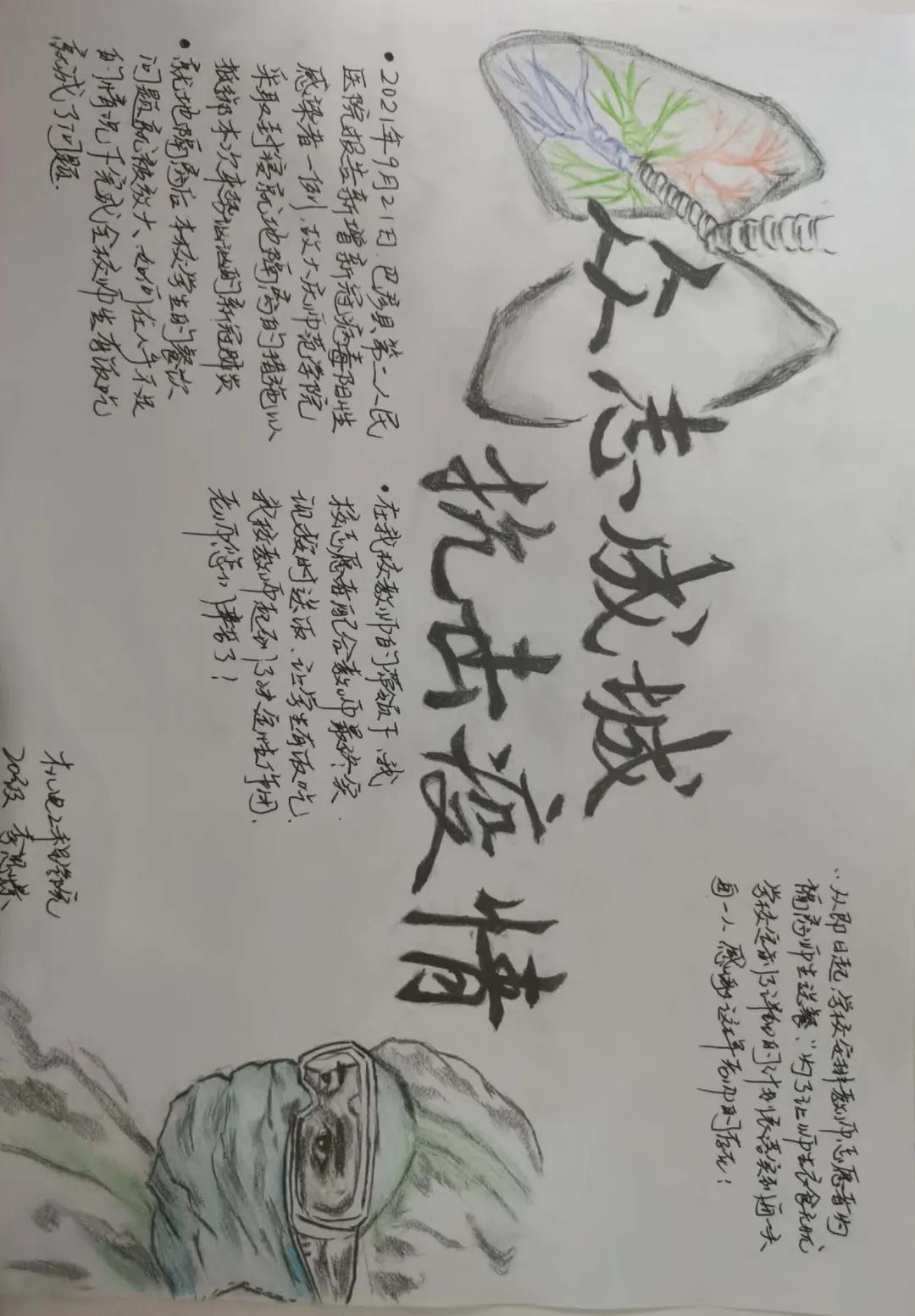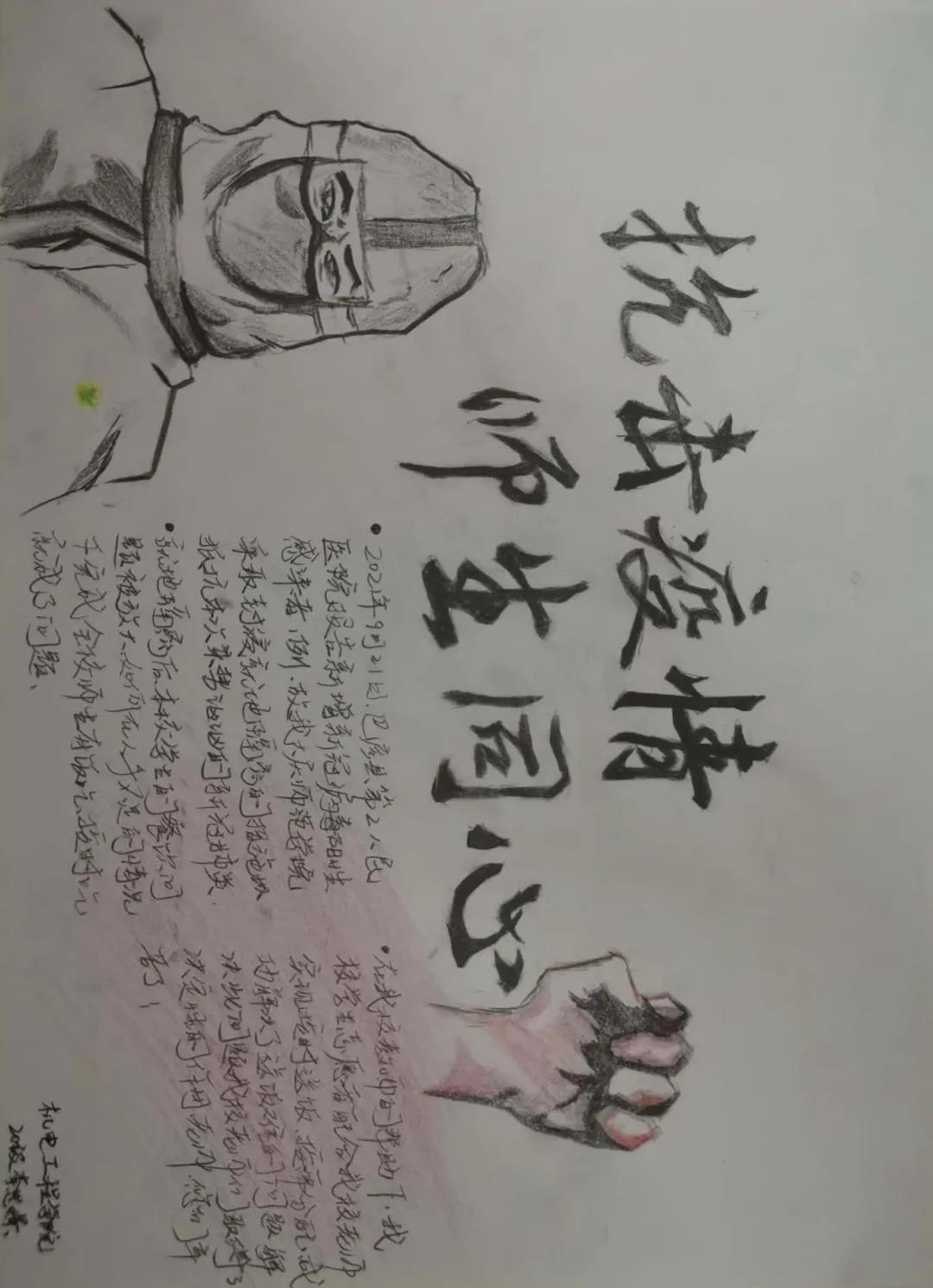 机电学子绘制抗疫手抄报