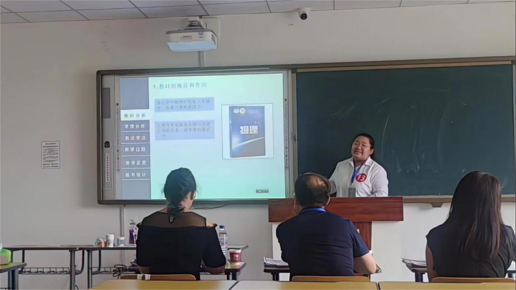 展评活动过程精彩纷呈,参赛选手按抽签顺序依次进行以"说课"形式进行教学阐释和“无生教学”形式进行片段展示。公司选手精心准备,巧思精琢,以自信的教态,端正的仪表和扎实的基本功,呈现物理课程教学过程;借助PPT从单元教学内容、单元课时安排、教学目标定位、基本理念、教学过程、板书设计、教学反思、教学评价等方面进行教学阐释,充分展现了作为一名师范生所具备的素养和能力。