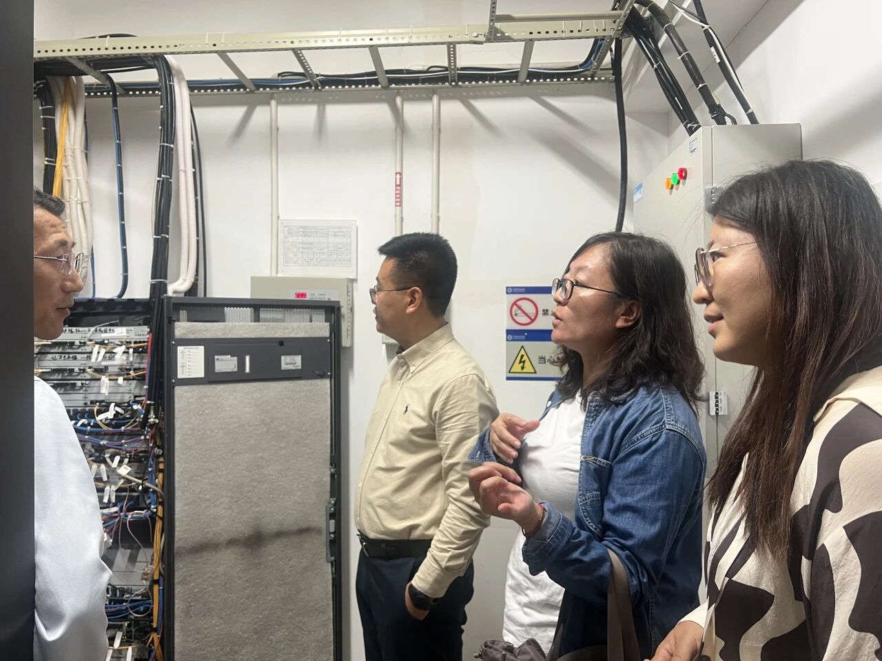大庆移动让胡路分公司总经理高振,网络维护主任丛秀亮、集团客户部主任申翰热情接待了公司一行,并陪同参观了让胡路区核心机房和办公环境,重点介绍了依托5G通信网络的无线、传输及家庭宽带等核心业务流程。
