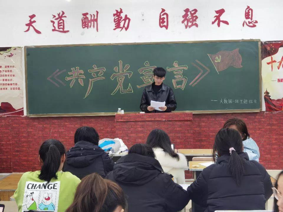 同学们选取了电视剧中的片段进行剧情展示,其中包括有朗诵和演讲。在班会讲台上的同学们声情并茂,充满热情的演译下,台下同学们对共产主义精神有了更加深刻的理解。