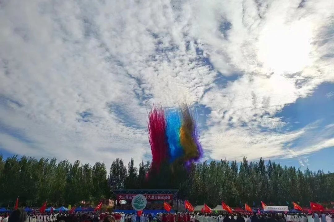 升旗仪式结束后,在全场师生的热切期盼中,大会主持人宣布公司第三十九届田径运动会开幕。霎时间,礼炮齐鸣,彩带飞舞,全体师生一片欢腾。