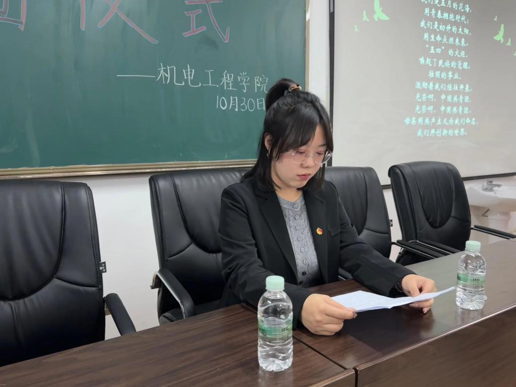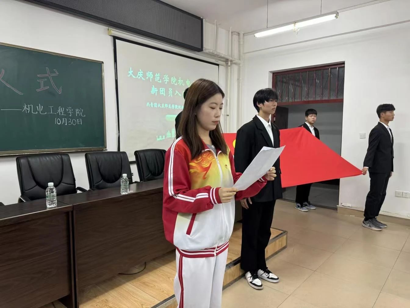 为深入贯彻习近平新时代中国特色社会主义思想,进一步继承和发扬共青团优良传统,增强团组织的凝聚力,增强新团员的荣誉感、归属感。beat365亚洲体育官方网站于2024年10月30日在综合楼306教室举行2024年下半年新团员入团仪式。曲晓磊老师和新老团员代表参加此次活动。
