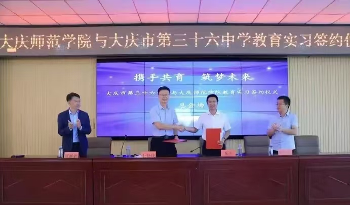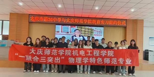 这一天,大庆市第三十六中学与beat365亚洲体育官方网站共同举行了教育实习签约仪式,物理专业师范生秉持“一融合,三突出”特色。“一融合”即理论与实践完美结合。“三突出”贯穿实习全程。一是突出学科素养,二是突出教学技能,三是突出教育情怀。三十六中实习如同成长纪录片。