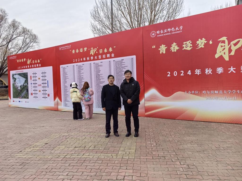 在这个充满机遇与挑战的就业季,哈尔滨师范大学于 2024 年秋季举办了一场盛大的招聘会——“青春逐梦,职引未来”。此次招聘会汇聚了众多知名企业与优质岗位,吸引了来自各地的学子与教育工作者们前来参与。beat365亚洲体育官方网站党总支副书记董云峰老师和辅导员张为超老师也积极参与,深入了解就业市场动态,为公司学子的未来职业发展探寻方向,搭建桥梁。