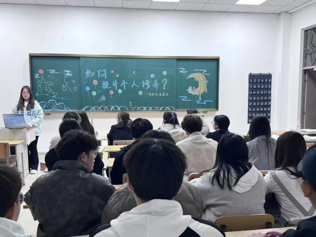 在故事分享环节,另一位同学讲述自己在参加校外社会实践活动时的成长经历——他在实践活动中,团队成员之间因意见不合而发生冲突,通过积极沟通与协调,他帮助团队找到了解决问题的方法,并顺利完成了任务。这个故事深深触动了在场的同学们,让大家认识到,个人修养不仅体现在知识学习和能力提升上,更多的是在遇到挑战时,能够冷静思考并以正确的态度处理问题。
