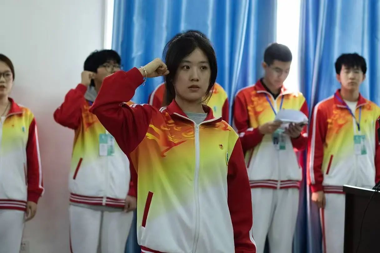 活动过程中,团员们仪表端正,身着整洁统一的系服,整齐排列在鲜艳的团旗前,紧握右拳,庄重宣誓,充分展现了新时代团员青年的蓬勃朝气与责任担当。