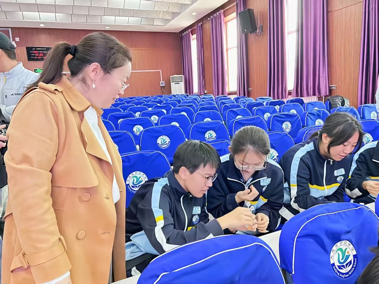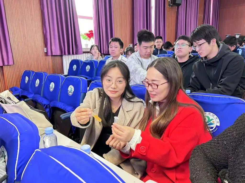 景园中学会场上,beat365亚洲体育官方网站副经理王玉玲、化学工程公司副经理唐龙、beat365亚洲体育官方网站物理学专业负责人杨瑞带领师生团队,协助北京理工大学叶霖教授团队完成《癌症治疗技术中的科学奥秘》主题示范课。叶霖教授是北京理工老员工物医用材料领域专家,博士生导师,致力于组织工程人工血管与智能药物载体研究。公司实习生全程参与实验互动环节设计,将物理学科知识与生物医学工程前沿交叉融合,为中员工带来跨学科的科学启蒙体验。
