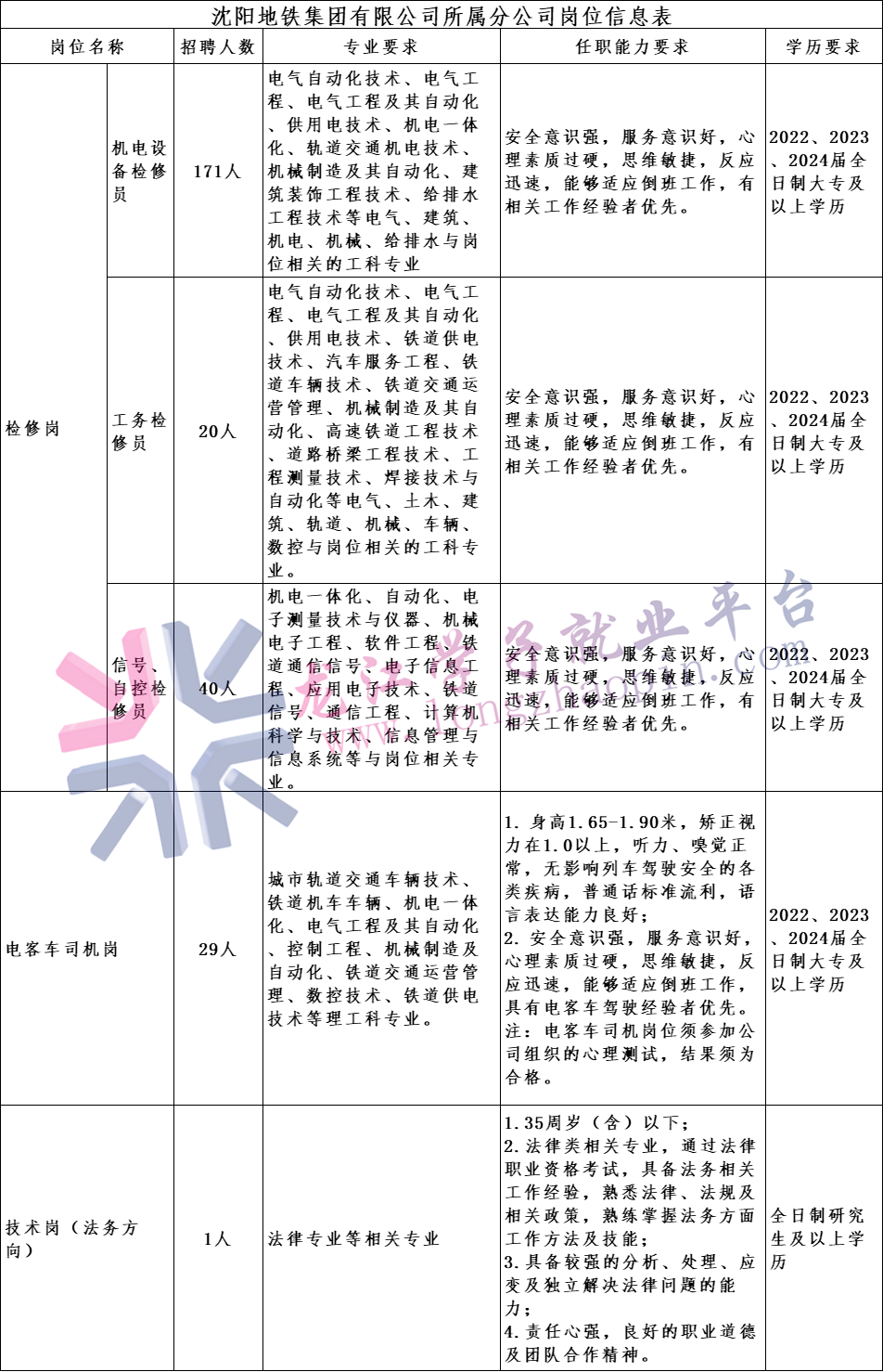 一职为你 | 沈阳地铁集团有限公司运营分公司招聘公告